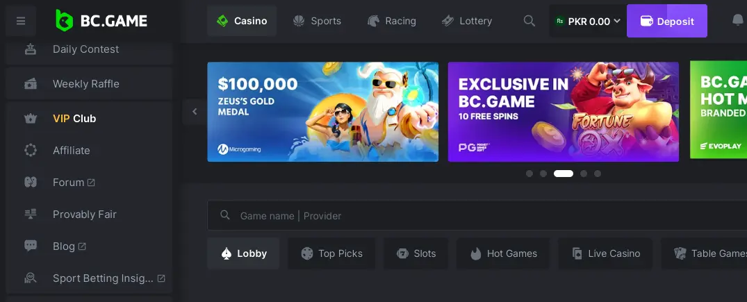 Players from Pakistan have access to nearly all games at BC.Game, including slots, table games, and live casino options. Accessibility might vary based on game provider restrictions, which occasionally block specific titles from certain regions.