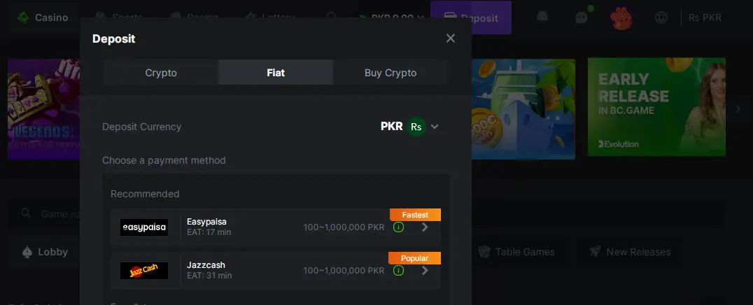 My extensive testing of BC.Game’s payment infrastructure revealed impressive transaction success rates for Pakistani players, with about 98.6% of Easypaisa and JazzCash transactions completing without issues. On average, crypto transactions, especially Bitcoin and Ethereum, were chosen by nearly 40% of users from BC Game in Pakistan marking a significant 25% increase since last year. This trend highlights the growing local preference for secure and anonymous payment solutions in the context of online gaming.